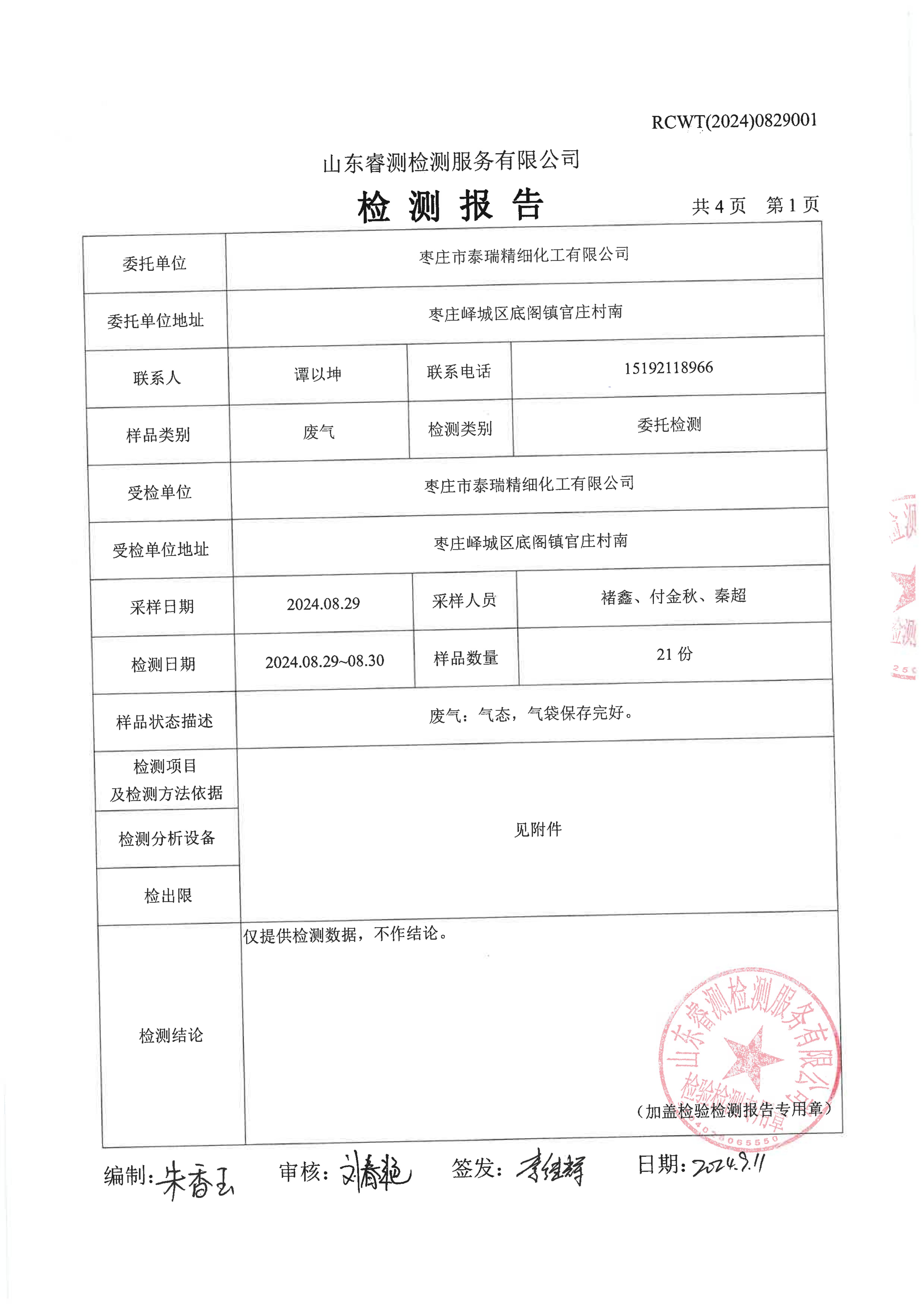 2024年8月廢氣檢測報告