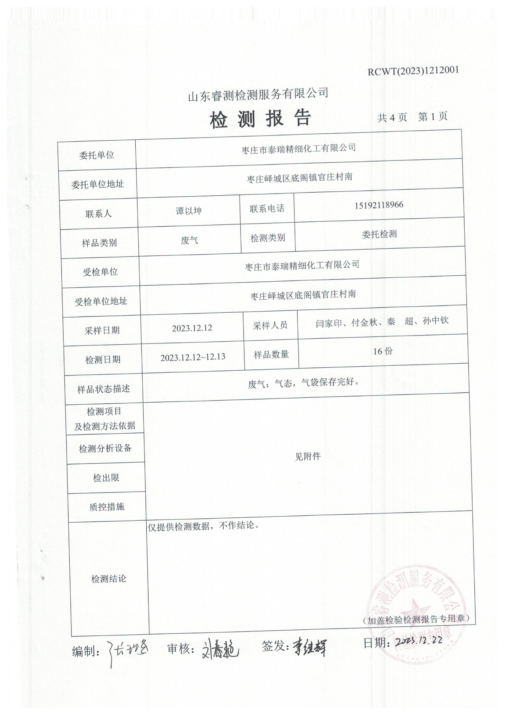 2023年第4季度(12月份)檢測報告