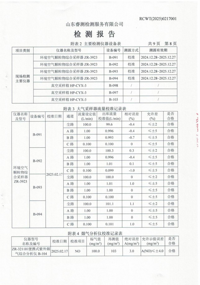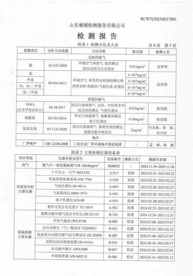 2025年第一季度廢氣、噪聲檢測報(bào)告